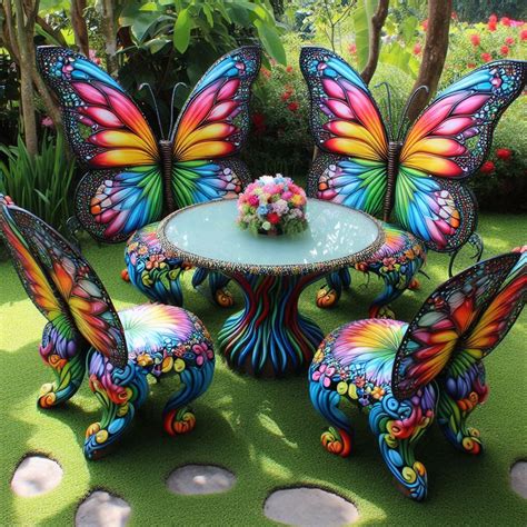 A butterfly patio set is a beautiful addition to any outdoor space, adding a touch of elegance and charm. The delicate butterfly motifs on the chairs and table create a whimsical and enchanting atmosphere, perfect for relaxing and enjoying the beauty of nature.